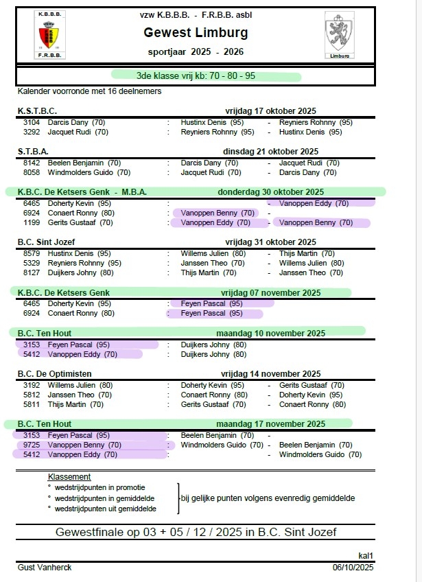 BDG 3-band kb - db1015 - " Ten Hout db // KSTBC " van ma 29-09-25 naar do 25/09/25 = ploeg Ten Hout db