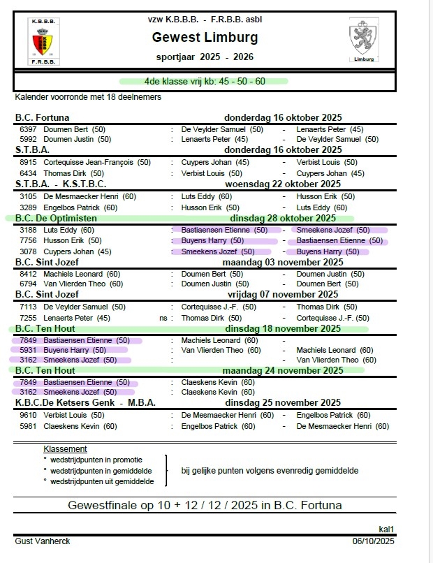 BDG 3-band kb - db1015 - " Ten Hout db // KSTBC " van ma 29-09-25 naar do 25/09/25 = ploeg Ten Hout db
